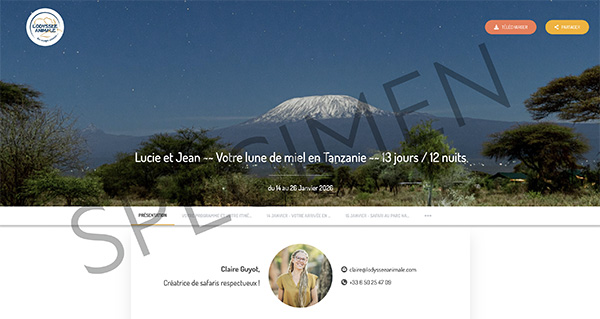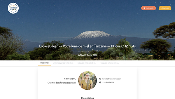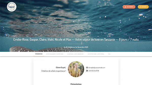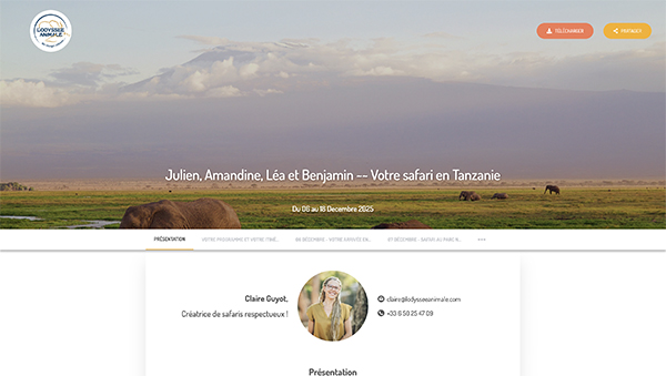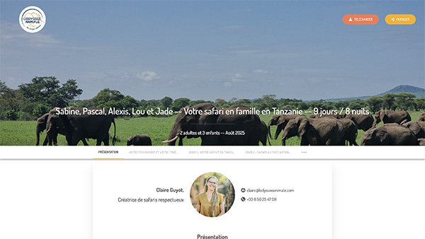regroupant votre programme, votre itinéraire détaillé, les liens vers les hébergements proposés, des suggestions d’activités, ainsi que toutes les informations nécessaires sur les trajets et transports.